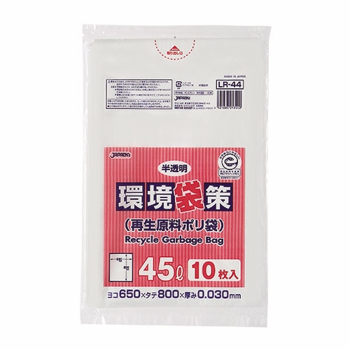 ジャパックス 環境袋策 再生原料ポリ袋 半透明 45L LR-44 1セット(100枚:10枚×10パック)