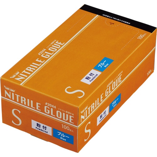 川西工業 ニトリル 使いきり極薄手袋 粉付 ブルー S #2044 1箱(100枚)