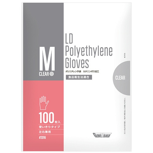 川西工業 ポリエチレン手袋 カタエンボス クリア M #2016 1セット(10000枚:100枚×100パック)