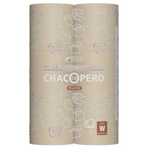 コアレックス トイレットペーパー チャコペロ ワンタッチコアレス ダブル 芯なし 65m 1セット(60ロール:6ロール×10パック)
