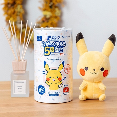 丸富製紙 トイレットペーパー モンポケ 5倍巻き パルプ ダブル 芯なし 125m 1セット(16ロール:2ロール×8パック)