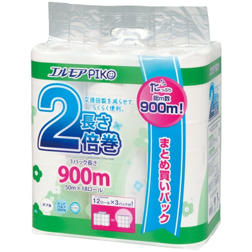 カミ商事 エルモア ピコ 2倍巻トイレットロール 花の香り ダブル 50m 1セット(72ロール:18ロール×4パック)