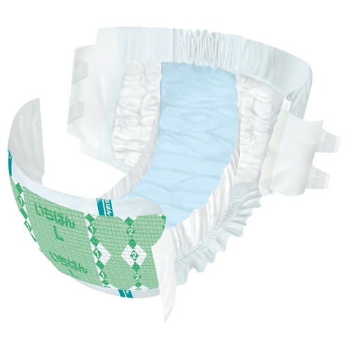 ●肌に触れる面に抗菌ブルーシートを採用し、おむつ内の菌の増殖を抑制。テープ止めタイプのLサイズ、17枚×4パックセットです。