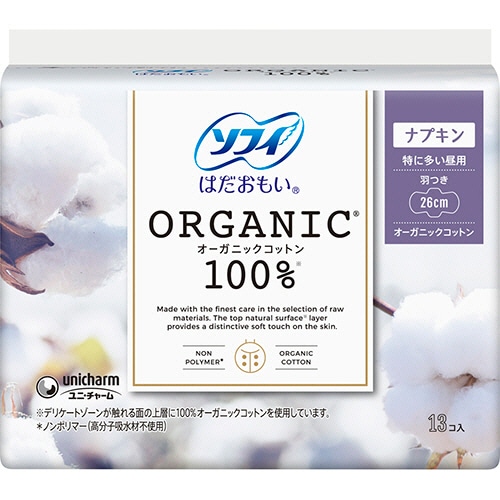 ユニ・チャーム ソフィ はだおもい オーガニックコットン 特に多い昼用 羽つき 26cm 1セット(39枚:13枚×3パック)