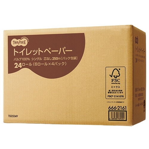 TANOSEE トイレットペーパー(パルプ100%) パック包装 シングル 芯なし 250m 1セット(72ロール:24ロール×3ケース)